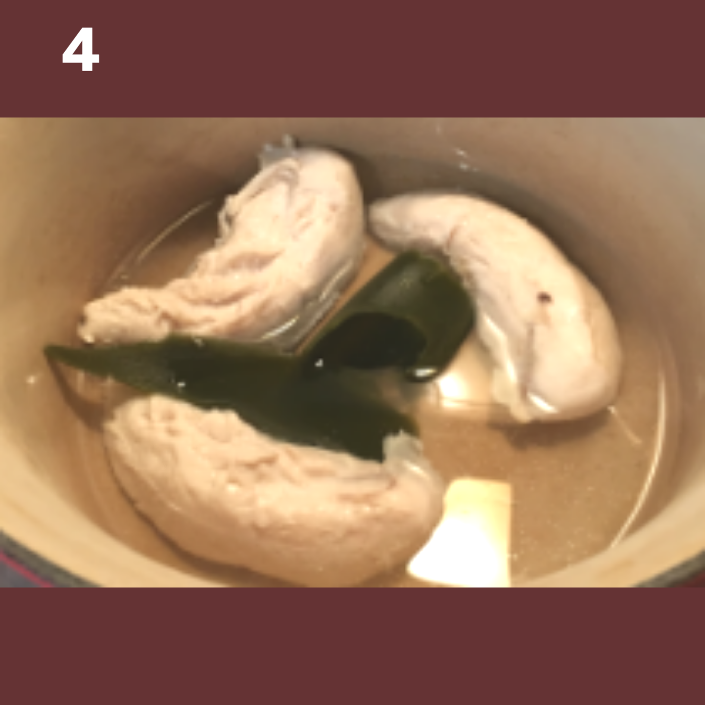 ササミ出汁を作ります。鍋に水500mlとササミ、昆布を入れて中火にかけ、沸騰したら弱火にして30分煮ます。途中、水分がなくなりそうになったら水を足します。