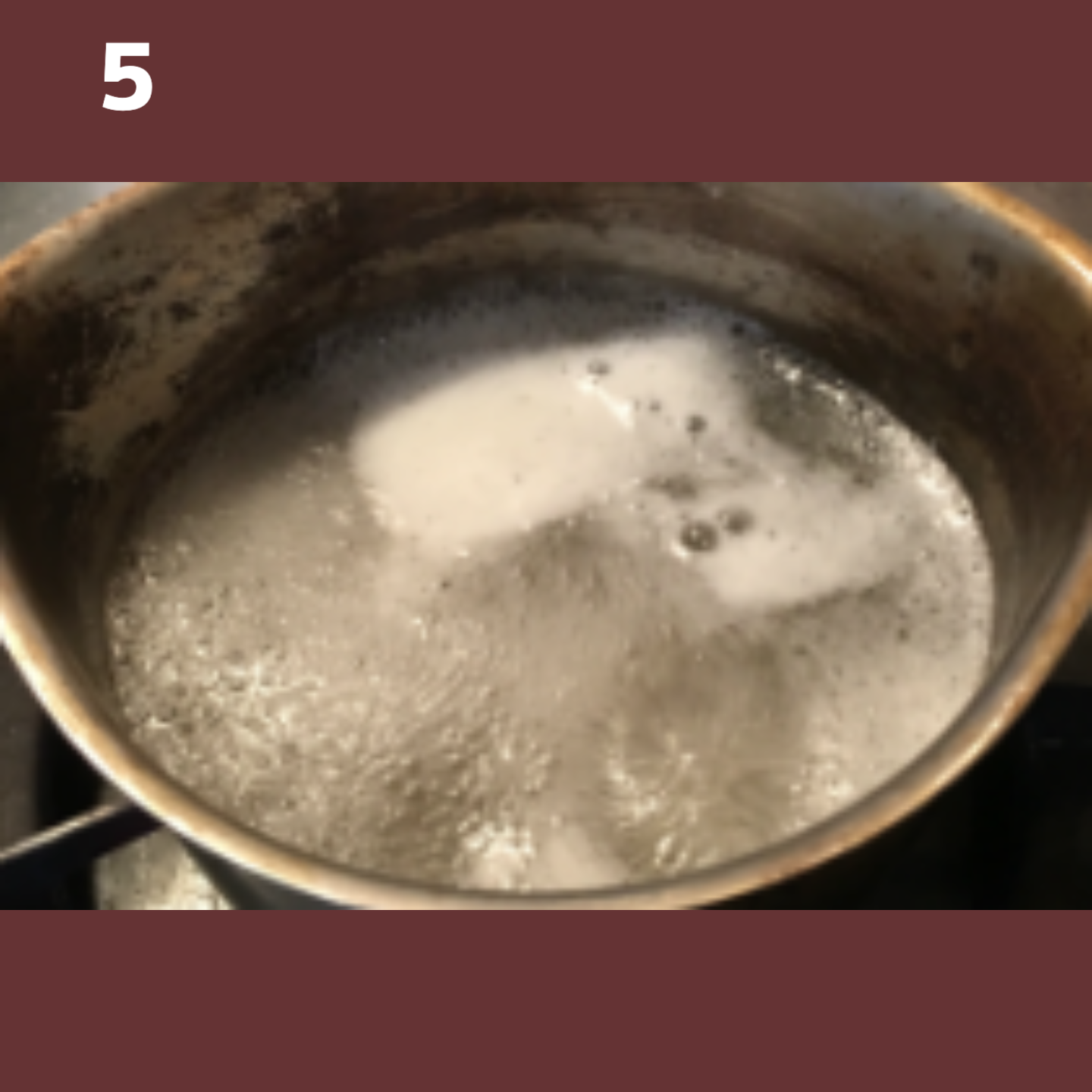 4の鍋からササミと昆布、生姜を取り出します。残った出汁(300mlぐらいなければ水を足す)と、粉寒天を3g入れて火にかけます。よく混ぜながら寒天を溶かします。沸騰したら中火にして更に2分加熱します。