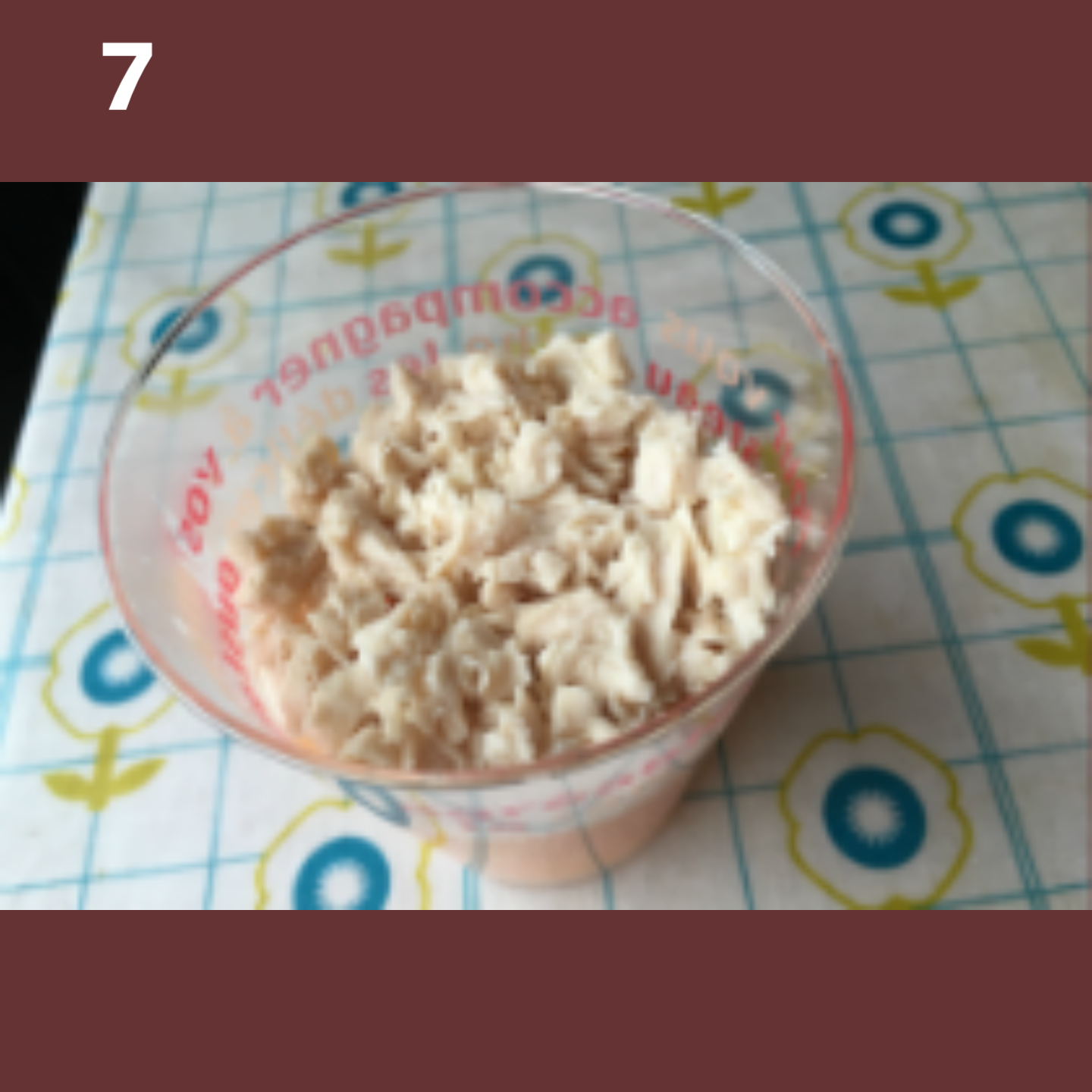 3の表面が固まった野菜ジュースの寒天の上に6のササミを乗せます。