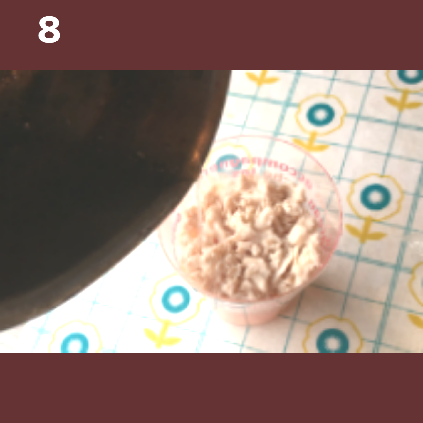 5の鍋の出汁の寒天を7の器に注ぎます。鍋の寒天が固まってしまったら、少し火にかけて溶かしてください。